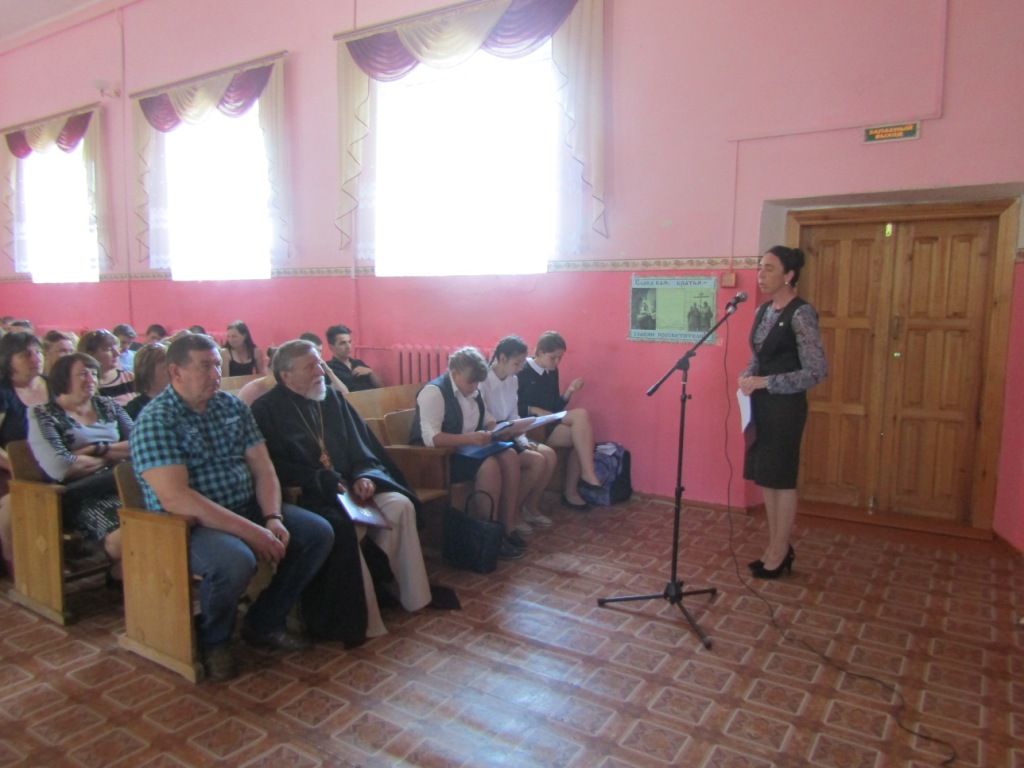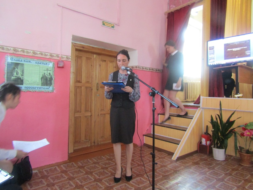 Помощник благочинного по работе с молодежью Светлана Александровна Рыжакова выступила перед собранием с докладом по теме «Просветительская деятельность Кирилла и Мефодия», осветив исключительную важность дела равноапостольных братьев, благодаря деятельности которых славянские народы не только обрели алфавит, но и были включены в цивилизационную среду христианских народов.