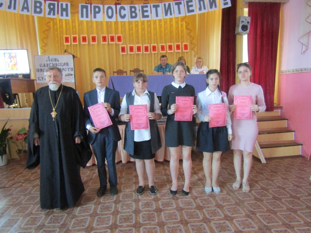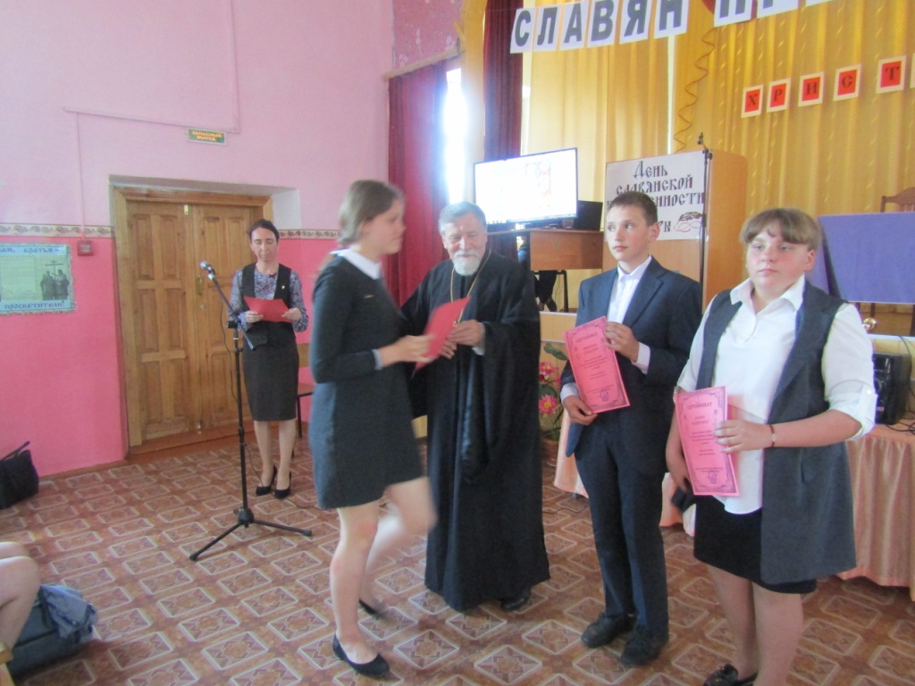 В рамках праздника на базе Мглинского филиала ГБПОУ «Брянский аграрный техникум имени Героя России А.С. Зайцева» состоялась научно-практическая конференция учащихся и студентов «Слава вам, братья- славян просветители!». В мероприятии приняли участие представители учреждений культуры г. Мглина, руководство техникума, воспитанники воскресной школы храма Успения Пресвятой Богородицы г. Мглина, учащиеся и студенты. Работу конференции открыл приветственным словом благочинный Мглинского церковного округа протоиерей Василий Климчук. Его Высокопреподобие в ходе выступления обратился к молодежи, отметив важность общих усилий в деле возрождения Православия в нашей стране, в чем может стать примером подвиг равноапостольных Кирилла и Мефодия.