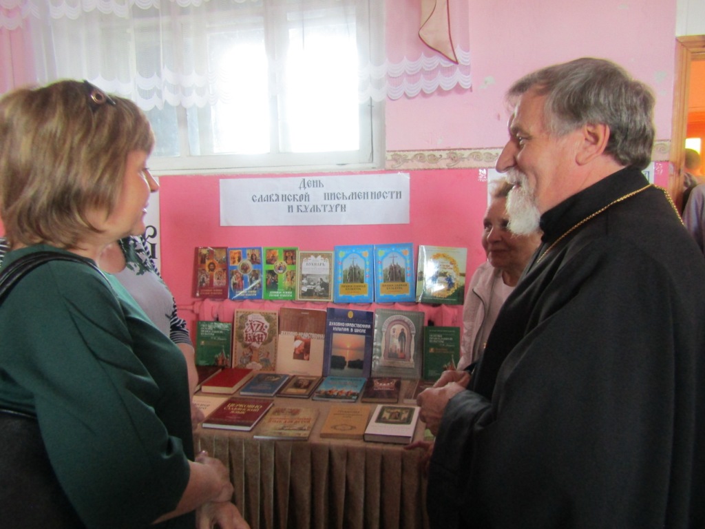 На конференции была представлена книжная выставка, посвященная Дню славянской письменности и культуры и деятельности святых равноапостольных Кирилла и Мефодия – учителей словенских, организованная приходской библиотекой храма Успения Пресвятой Богородицы г. Мглина.