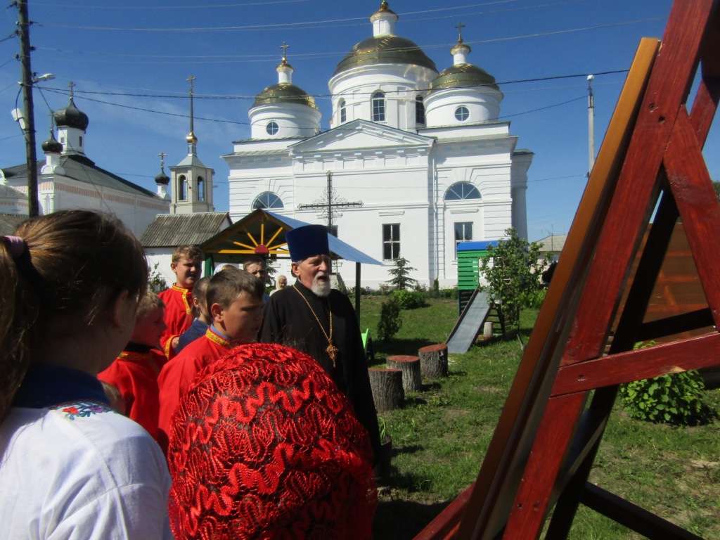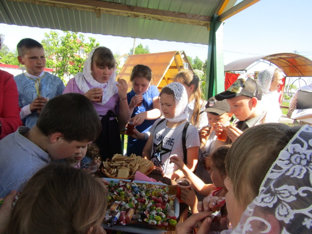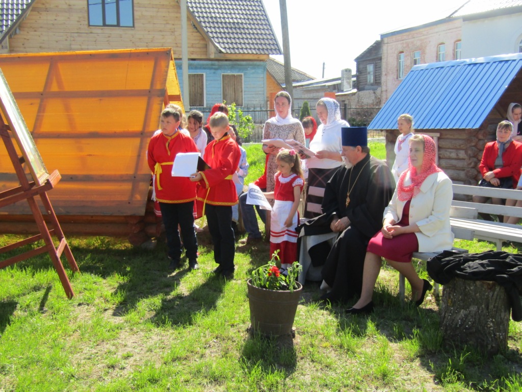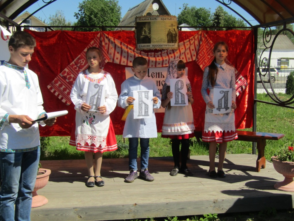 После богослужения все были приглашены на праздничный концерт, подготовленный воскресной школой ко Дню славянской письменности и культуры. Открыл праздничное мероприятие приветственным словом протоиерей Василий Климчук. Выступление ребят началось с пения тропаря святым Кириллу и Мефодию. Воспитанники воскресной школы рассказали о трудах и подвигах проповедников христианства, просветителей, создателей славянской азбуки– святых равноапостольным Кирилле и Мефодии. Со сцены звучали песни и стихи, посвященные создателям первой славянской азбуки, были исполнены танцевальные номера и представлены театрализованные постановки. Представление завершилось всеобщим исполнением «Гимна святым Кириллу и Мефодию». По окончании мероприятия на детской площадке было организовано чаепитие со сладостями.