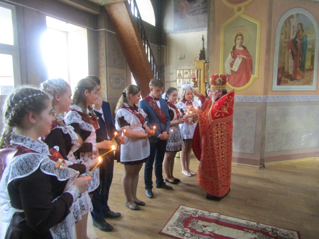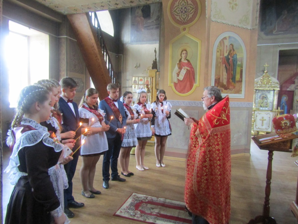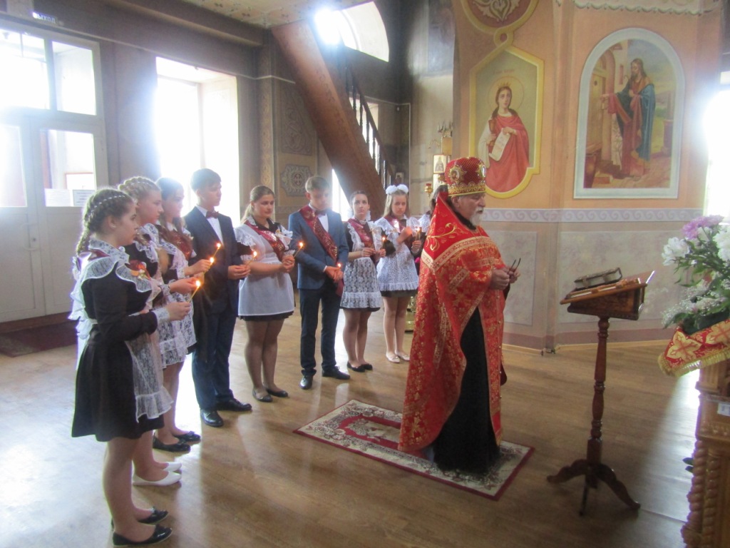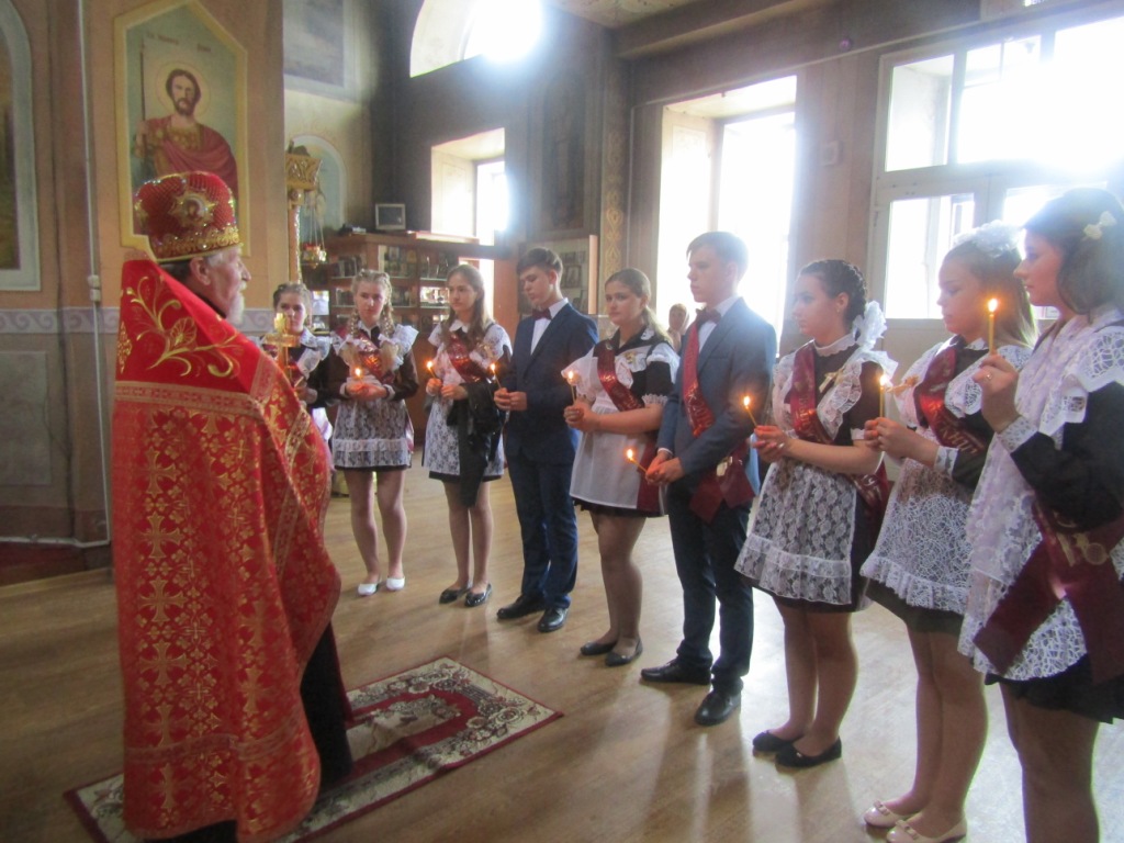 Одной из добрых традиций этого школьного праздника для мглинских одиннадцатиклассников является посещение поле торжественной линейки храма Успения Пресвятой Богородицы. И в нынешнем году выпускники Мглинкой СОШ №1 собрались под сводами Дома Божия, чтобы испросить благословения на сдачу предстоящих экзаменов и сделать свои первые шаги во взрослую жизнь под водительством Божиим. Благочинный Мглинского церковного округа протоиерей Василий Климчук отслужил молебен, окропил выпускников святой водой и обратился к ним с напутственным словом. Батюшка пожелал одиннадцатиклассникам на начавшемся для них новом жизненном этапе всегда руководствоваться заповедями Господними и, какой бы путь они для себя не избрали — идти по нему с верой и любовью в сердце, упованием на милость Божию. Протоиерей Василий преподал ребятам благословение и преподнес в дар каждому иконку «Прибавление ума». У святых образов ребята поставили свечи и испросили помощи и заступничества святых покровителей учащихся.