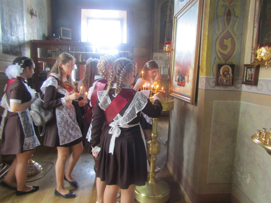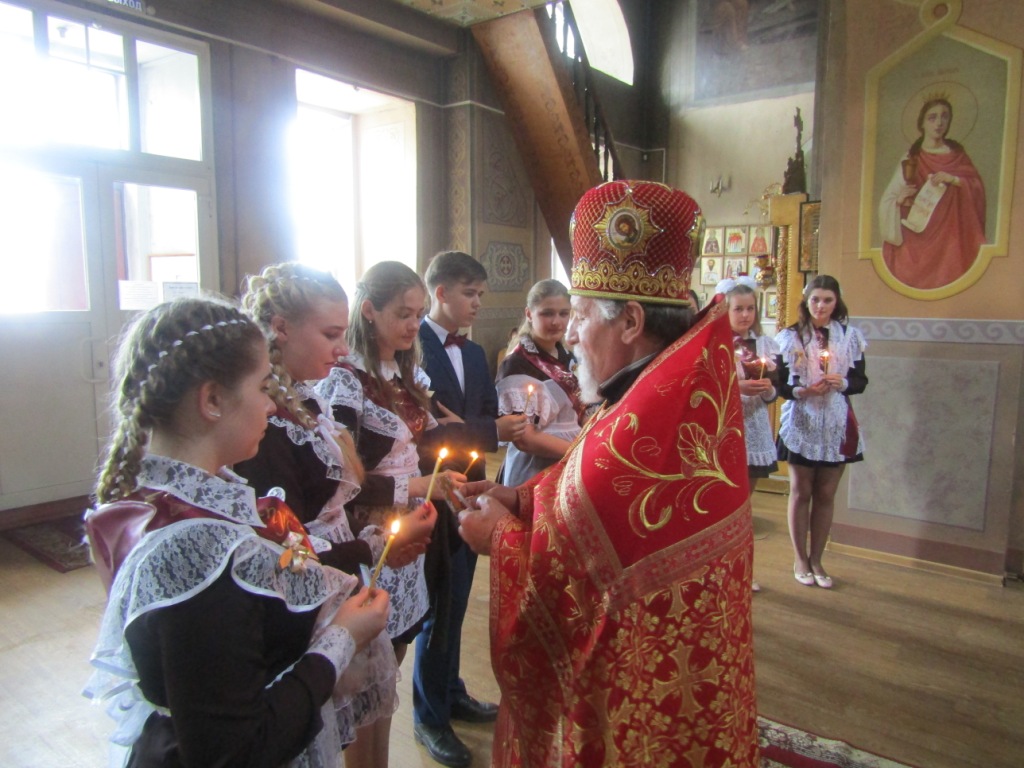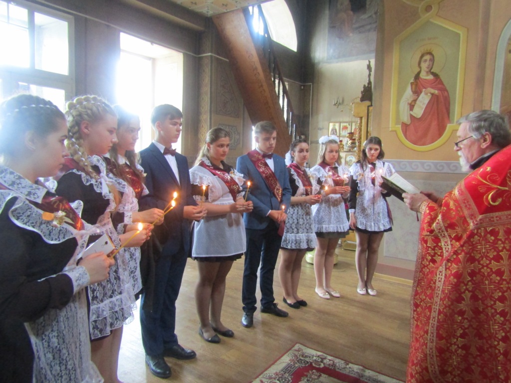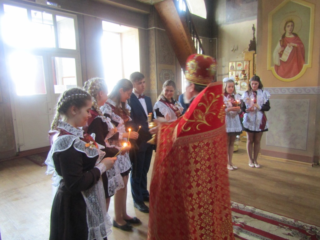 Одной из добрых традиций этого школьного праздника для мглинских одиннадцатиклассников является посещение поле торжественной линейки храма Успения Пресвятой Богородицы. И в нынешнем году выпускники Мглинкой СОШ №1 собрались под сводами Дома Божия, чтобы испросить благословения на сдачу предстоящих экзаменов и сделать свои первые шаги во взрослую жизнь под водительством Божиим. Благочинный Мглинского церковного округа протоиерей Василий Климчук отслужил молебен, окропил выпускников святой водой и обратился к ним с напутственным словом. Батюшка пожелал одиннадцатиклассникам на начавшемся для них новом жизненном этапе всегда руководствоваться заповедями Господними и, какой бы путь они для себя не избрали — идти по нему с верой и любовью в сердце, упованием на милость Божию. Протоиерей Василий преподал ребятам благословение и преподнес в дар каждому иконку «Прибавление ума». У святых образов ребята поставили свечи и испросили помощи и заступничества святых покровителей учащихся.