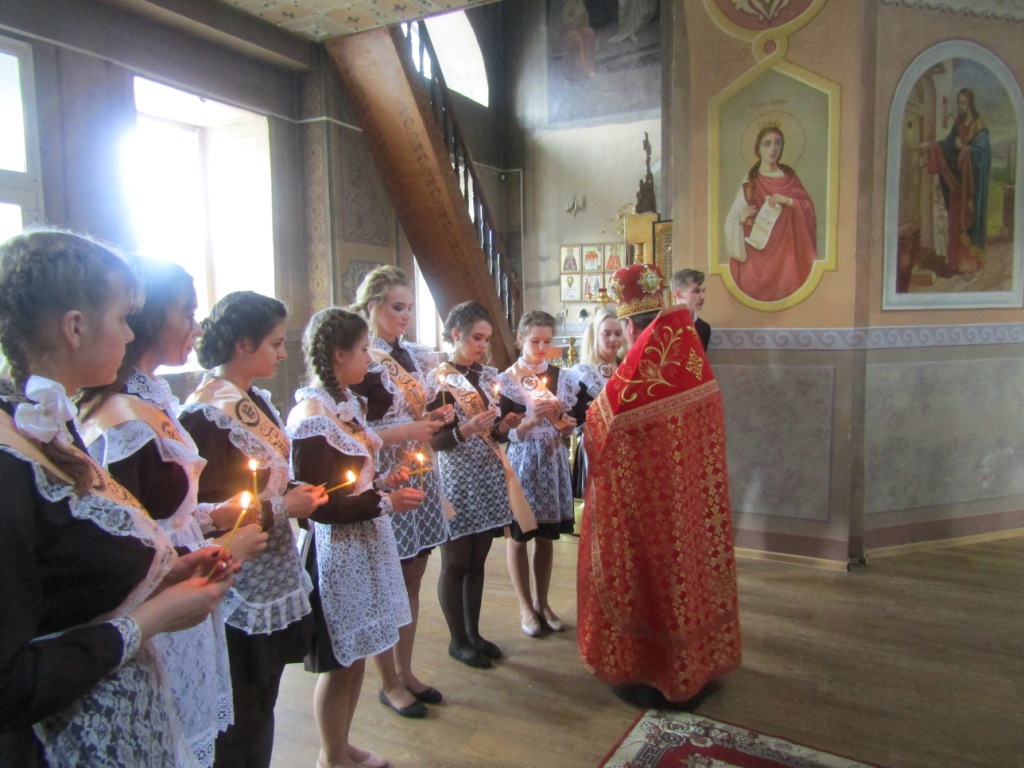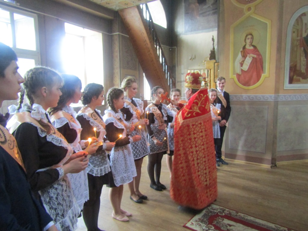Прощальный школьный звонок прозвенел для учащихся выпускных классов Мглинской СОШ №2 25 мая, открыв для них новый жизненный этап. И потому в столь важный для молодых людей период, когда каждый из них выбирает свою индивидуальную дорогу, закладывает фундамент всей жизни, они пришли за благословением под своды Дома Божия – в храм Успения Пресвятой Богородицы г. Мглина. Благочинный Мглинского церковного округа протоиерей Василий Климчук отслужил молебен и благословил учащихся на успешную сдачу единых государственных экзаменов, преподнеся каждому одиннадцатикласснику иконку «Прибавление ума». Батюшка обратился с напутственным словом к выпускникам, напомнил ребятам о святых, покровительствующих учению и о важности и силе молитвы в любом деле, в том числе и учении и пожелал, чтобы их жизненный фундамент был из твёрдого камня. Вера, любовь к Богу и людям это и есть тот твёрдый камень на котором следует строить здание жизни, - отметил священник.