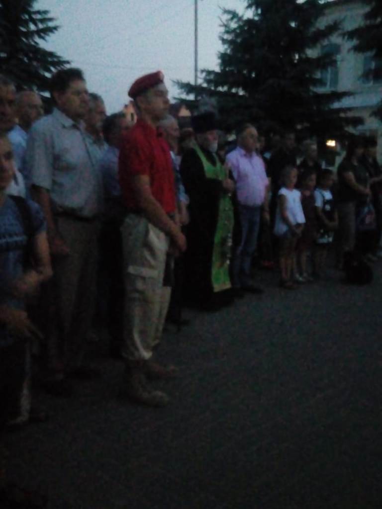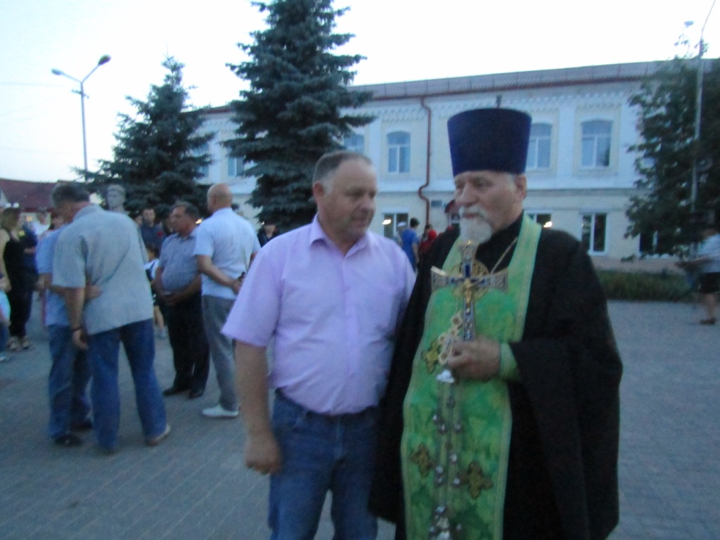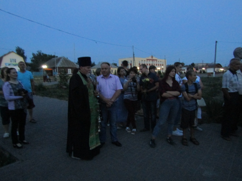 Благочинный Мглинского церковного округа протоиерей Василий Климчук отслужил литию по воинам, за веру и Отечество на поле брани живот свой положившим, в блокаду скончавшимся и всем для Победы потрудившимся. По завершении заупокойного богослужения Его Высокопреподобие обратился к участникам митинга с пастырским наставлением, призвав нынешнюю молодежь подражать своим дедам и прадедам – поколению Победителей в стойкости духа и любви к Родине и своим близким и поминать всех, прошедших горнило войны в молитвах.