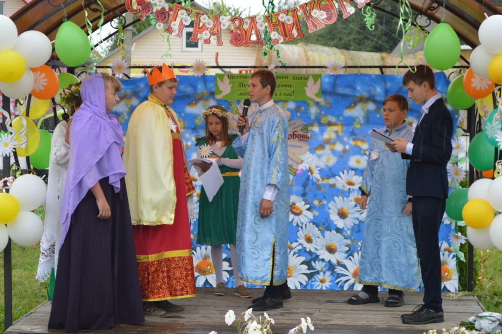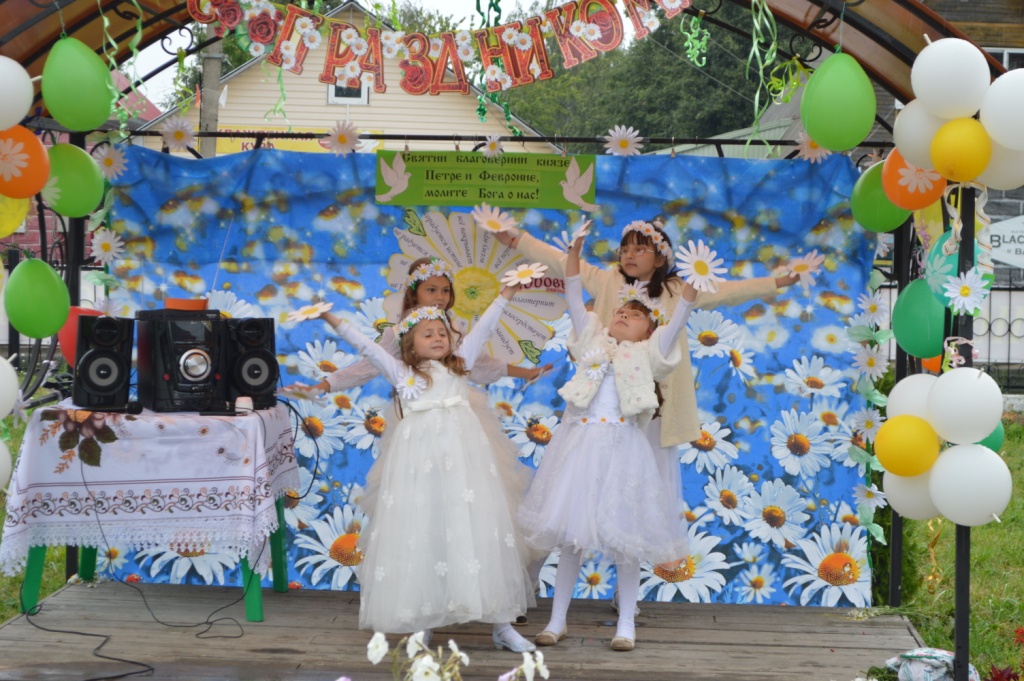 К поздравлениям батюшки присоединились и юные христиане Прихода – воспитанники воскресной школы. Трогательные песни, инсценировка, повествующая об истории любви и жизненном пути святой супружеской четы, добрые слова поздравлений и пожеланий создавали теплую атмосферу настоящего семейного праздника.