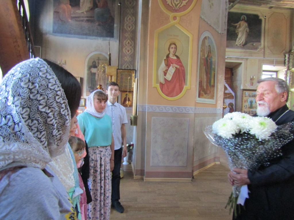 В этот день благочинный Мглинского церковного округа протоиерей Василий Климчук отметил День своего рождения. Любимого батюшку с сим знаменательным событием от лица прихожан и тружеников храма сердечно поздравили преподаватели и воспитанники воскресной школы. «По плодам их узнаете их» (Мф, 7:16) –эти слова легли в основу поздравлений в адрес батюшки, плоды трудов которого действительно велики: благолепный, преобразившийся храм, крепкая приходская община, доверие и любовь нескольких поколений многочисленных прихожан, активная миссионерская пастырская деятельность и многое другое. Дети и присоединившиеся к ним прихожане желали батюшке здоровья на многие лета жизни, мудрости, крепости сил и терпения, всеукрепляющей Божией помощи и благословения во всех многочисленных делах, нелегких трудах и благих начинаниях. В завершение поздравлений стены храма озарило провозглашение многолетия батюшке в едином порыве от всех собравшихся.