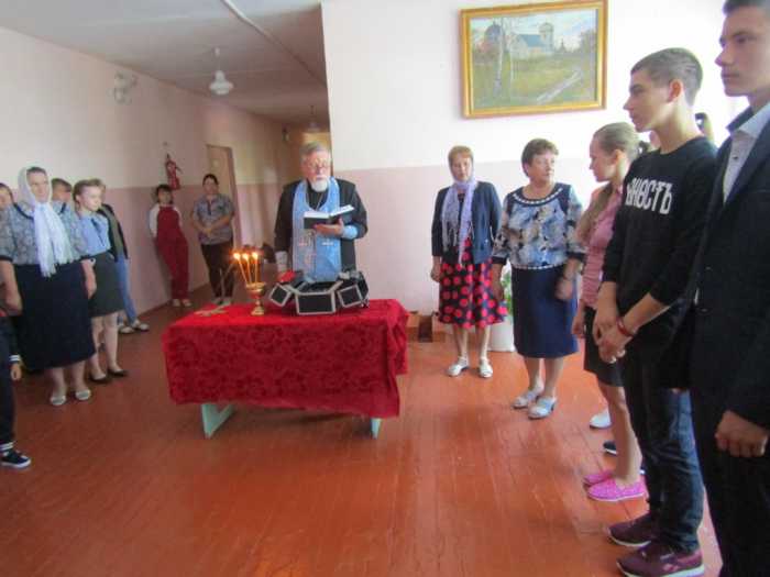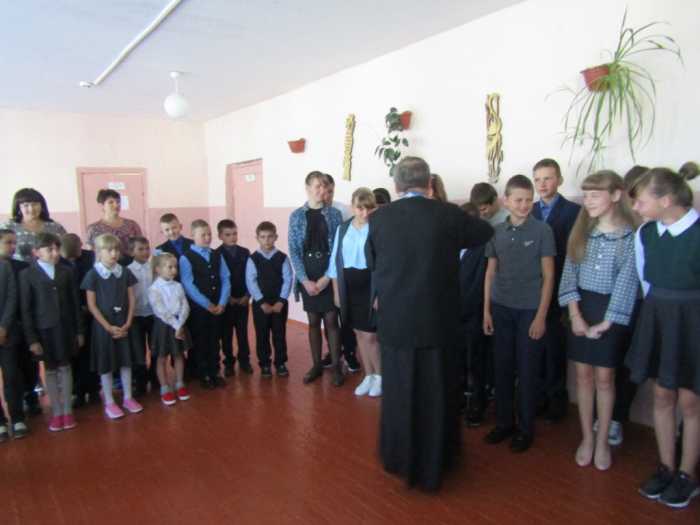 По завершении молебного пения протоиерей Василий окропил всех святой водой и обратился с напутственным словом на предстоящие учебные труды к педагогам и ученикам. Батюшка пожелал детям помощи Божией и благословения в постижении доброго и душеполезного учения; преподавателям - терпения, творческих свершений и крепости сил на профессиональном поприще. Учащимся и их наставникам батюшка в благословение подарил иконки. Получив духовное наставление и укрепление к восприятию знаний и к воспитанию своих сердец – во славу Церкви и Отечества приступили к учению.