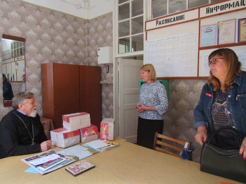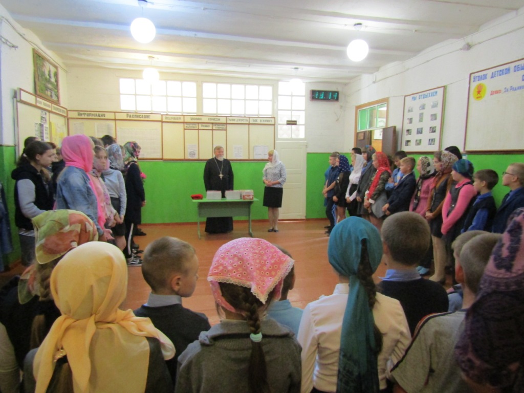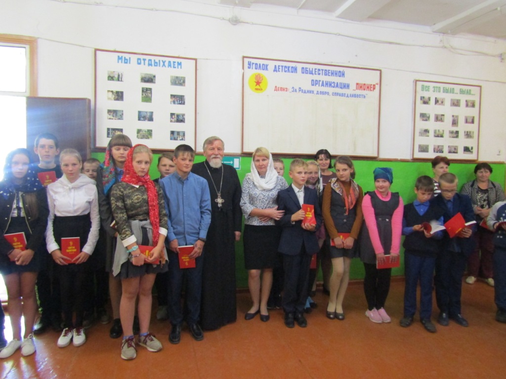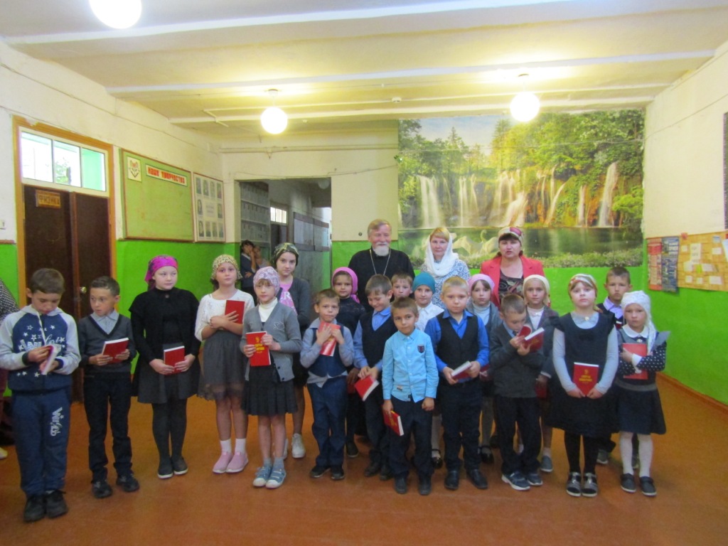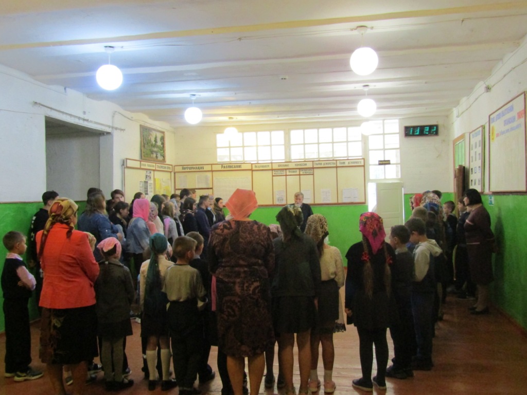 Протоиерей Василий призвал учащихся к активному, здоровому образу жизни, жизни по заповедям Господним в стремлении оградить себя от разрушительных страстей, погубляющих не только тело, но и душу. Батюшка рассказал присутствующим о Святом Евангелии – Книге книг, в которой содержатся Божественные истины, ведущие нас ко спасению. И оно само является источником жизни – словом, исполненным воистину силой и мудростью Господней. Учителя и учащиеся школы получили в дар от батюшки эту Главную Книгу человечества, дабы назидаться и утверждаться в жизни благодетельной – жизни во Христе.
