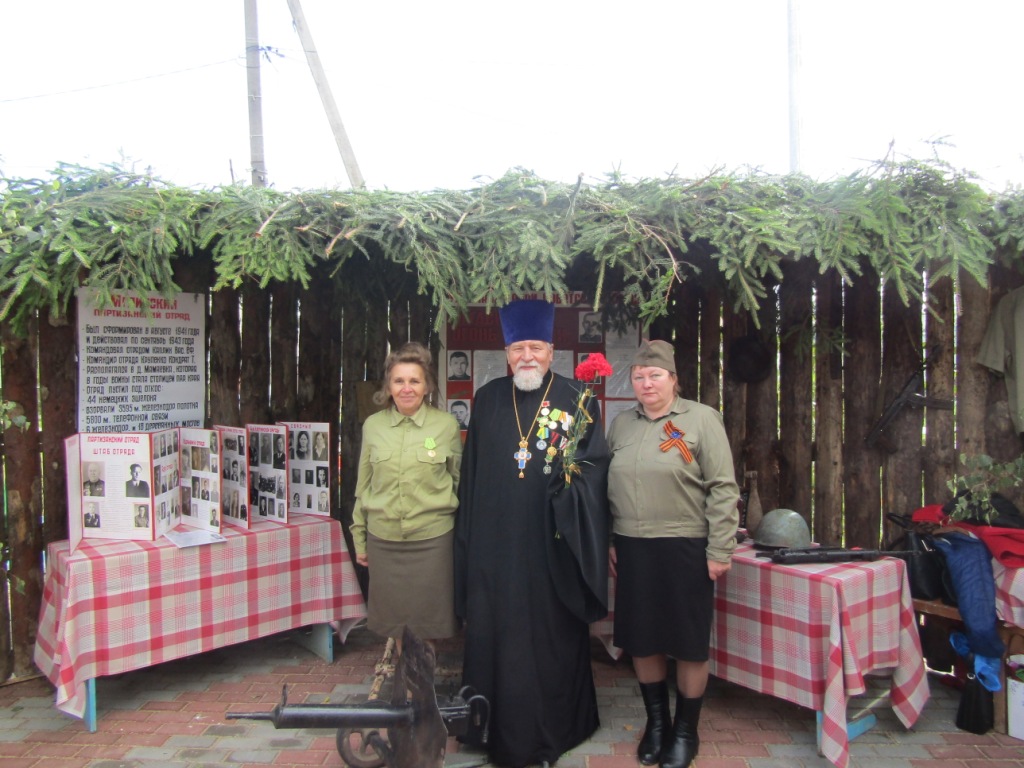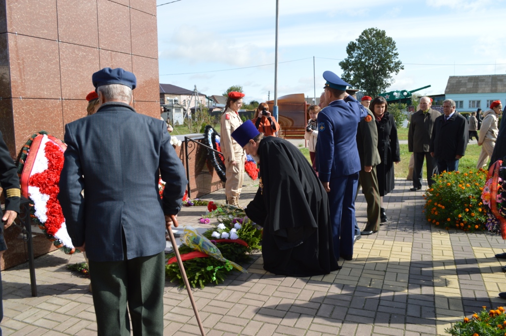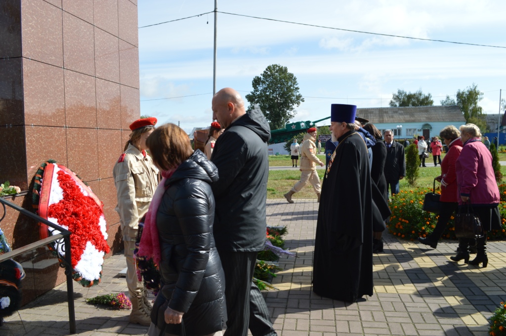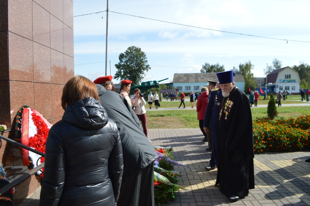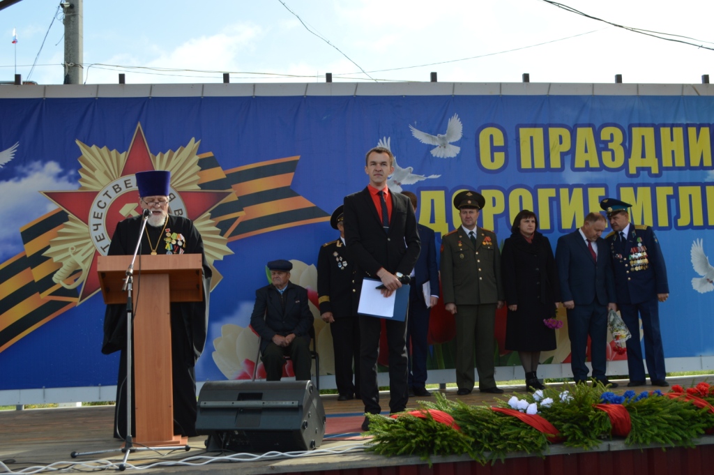 Почетным участником памятного мероприятия стал благочинный Мглинского церковного округа протоиерей Василий Климчук, который обратился к собравшимся с приветственным словом. Его Высокопреподобие в своем обращении отметил весомый вклад в Победу воинов-уроженцев Мглинской земли, воевавших на фронтах, партизан и подпольщиков, действовавших на территории района, мирных жителей. Батюшка призвал молодое поколение не забывать своих предков, годиться боевой славой наших ветеранов, героизмом тружеников тыла, всех тех, кто вынес тяжелые годы оккупации, кто поднял из руин город и села района. В память о павших, под мерные удары метронома, все застыли в минуте молчания.