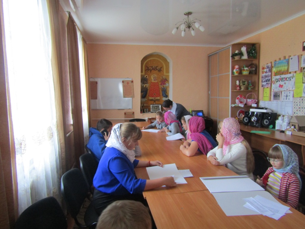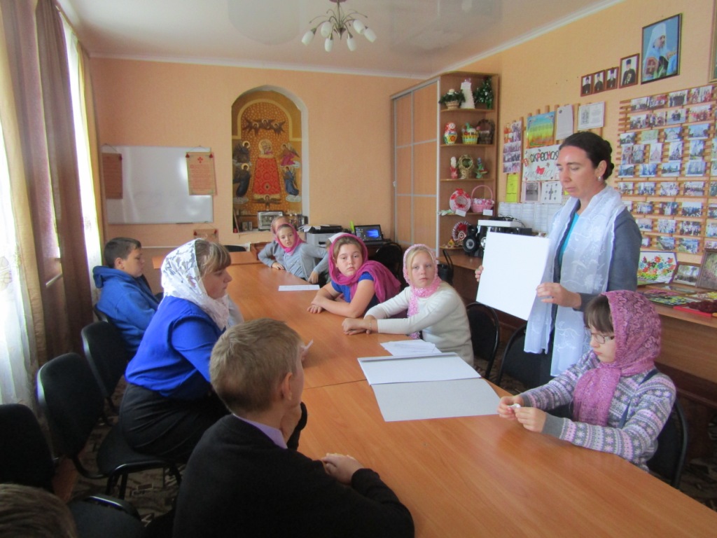 После урока директор воскресной школы С.А.Рыжакова ознакомила детей с положением и требованиями к оформлению работ Международного конкурса детского творчества «Красота Божьего мира», в котором воспитанники школы ежегодно принимают участие.