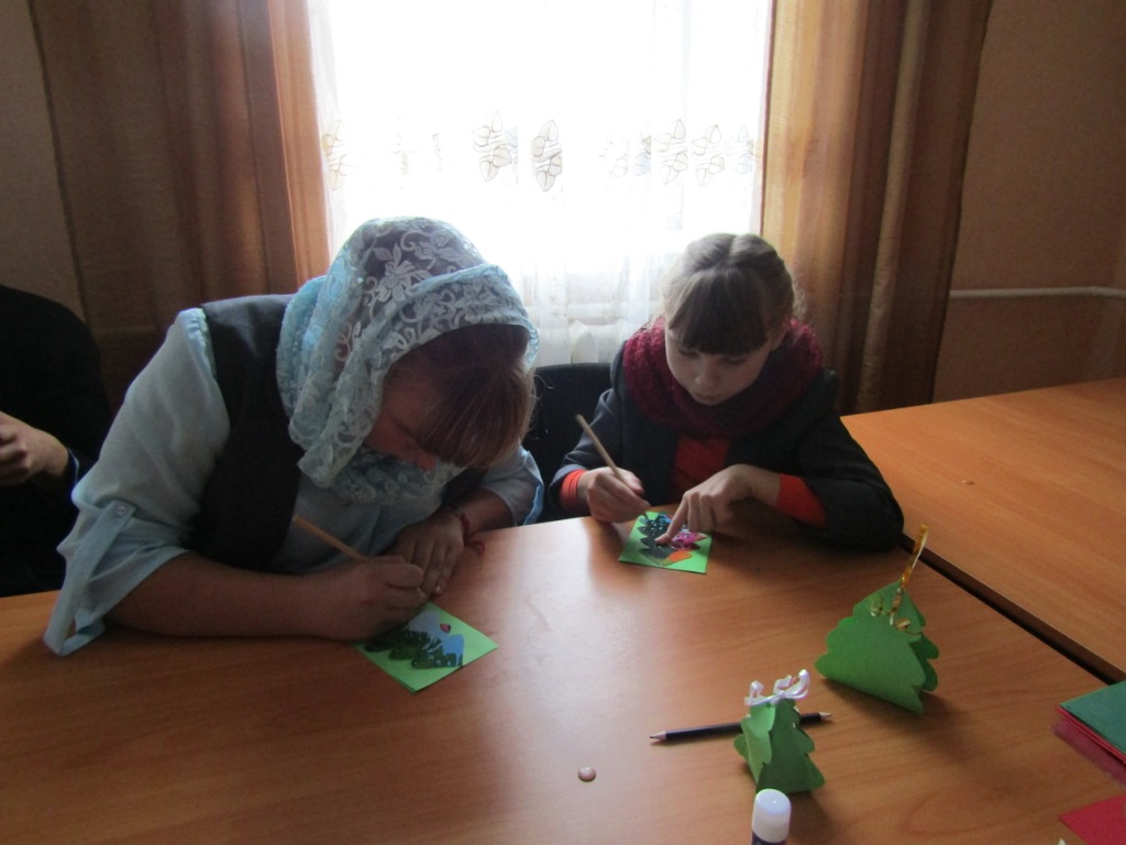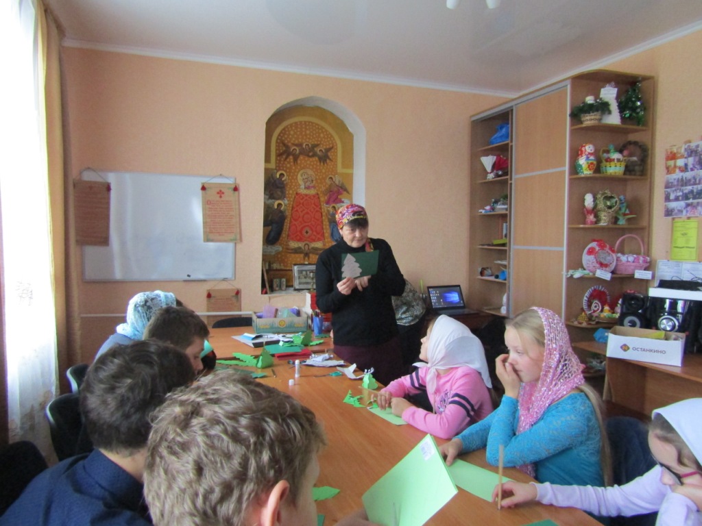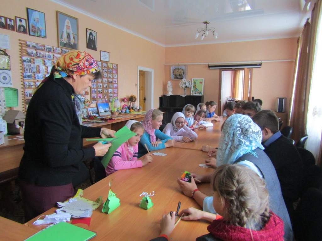На занятиях в «Творческой мастерской», которые провела педагог О.И.Зимина, воспитанники воскресной школы под руководством преподавателя изготовили красочные подарочные упаковки из цветной бумаги.