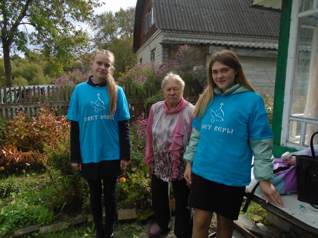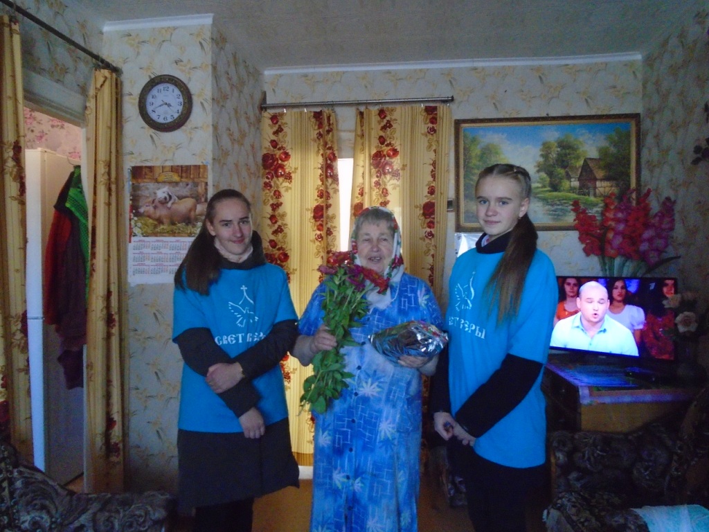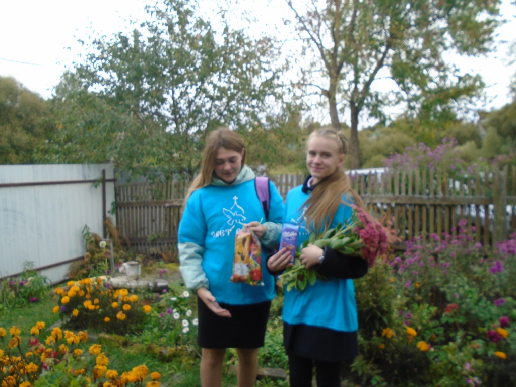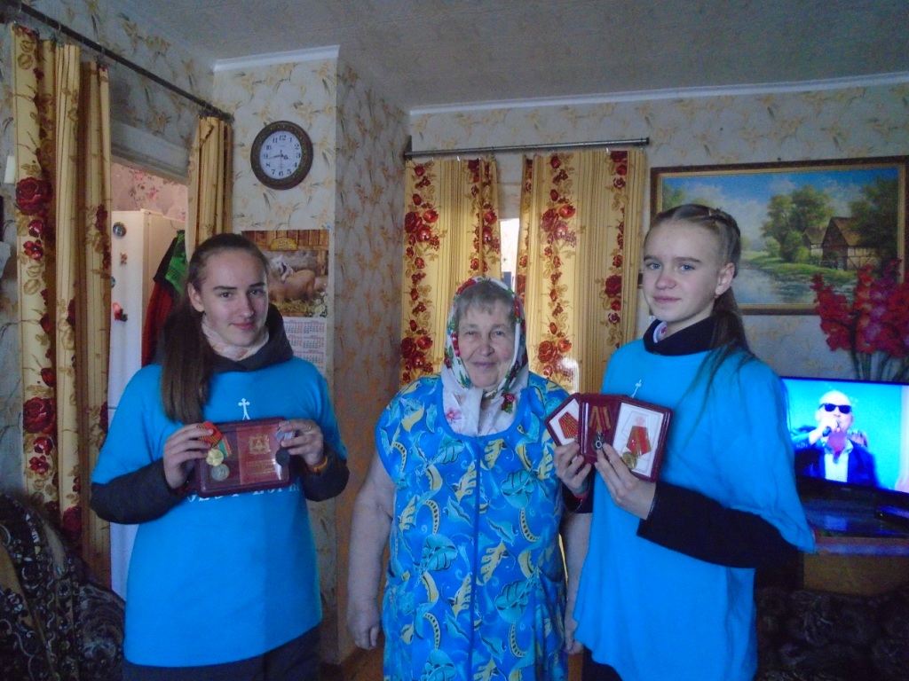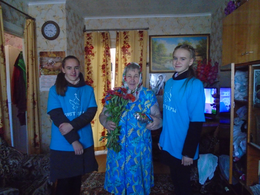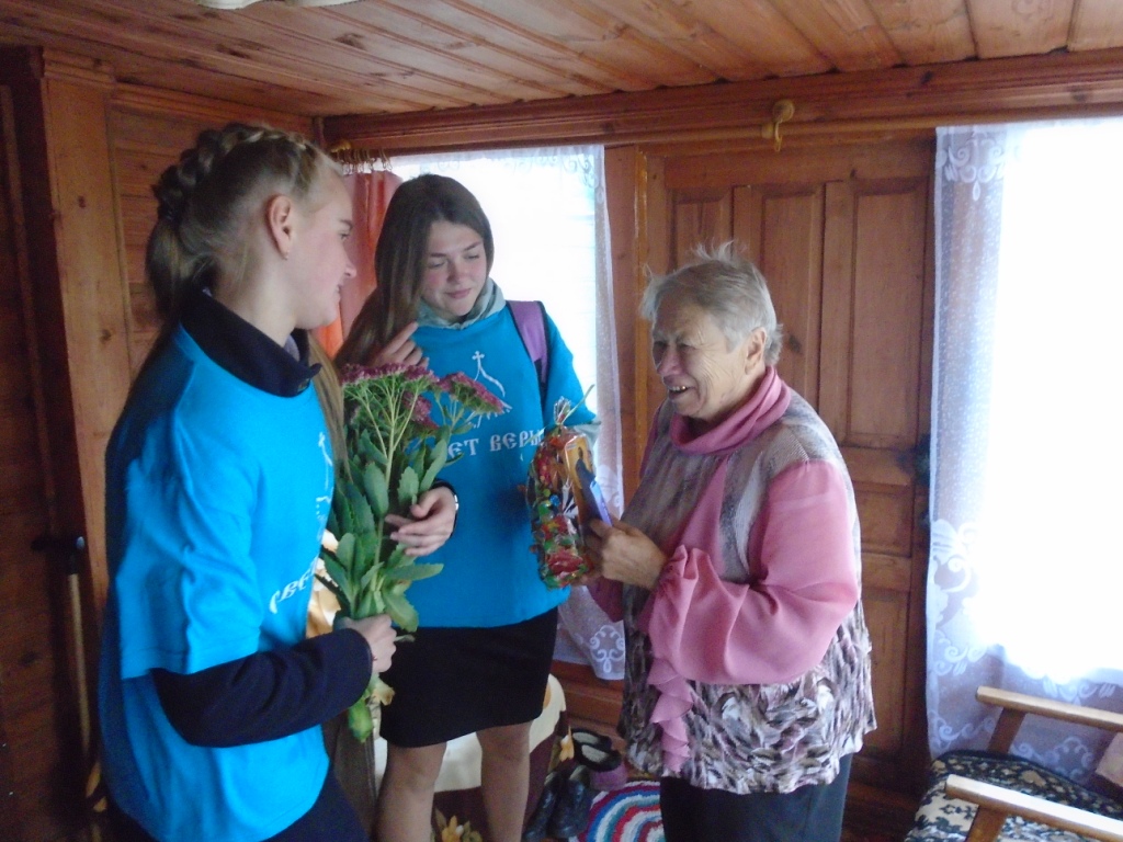 В преддверии Дня пожилого человека по благословению благочинного Мглинского церковного округа протоиерея Василия Климчука представители православной молодежной группы Мглинского благочиния «Свет веры» вместе с помощником благочинного по работе с молодежью С.А.Рыжаковой посетили бывших малолетних узников фашистских лагерей, своих земляков. Ребята навестили одну из старейших тружениц храма Успения Пресвятой Богородицы г. Мглина Татьяну Григорьевну Долгову, Анну Захаровну Кошелеву и Людмилу Леонидовну Зайцеву – невинных страдальцев большой войны, которые, наряду со взрослыми, в детском возрасте познали горечь чужбины, страх, голод и лишения. Затаив дыхание, слушали представители молодого поколения поколение старшее. Минуты, проведенные рядом с этими убеленными сединами, но не сломленными женщинами стали по- своему ценны для каждого из них. Для молодых людей это было не просто посещение, а дань уважения и памяти тем, чье детство пришлось на годы войны, тем, кто видел смерть, потери, слезы. Тем, кто, пережив годы военного лихолетья, поднимал страну из руин. Тем, кто до сих пор себя посвящает детям и внукам и молится за них. Общение за чаепитием и захватывающими, но такими страшными рассказами этих некогда маленьких свидетелей большой войны пролетало незаметно. Ребята, открыв для себя новое видение войны, выражали слова искреннего почтения и уважения перед воинскими и трудовыми заслугами представителей старшего поколения. Со словами благодарности и поздравлениями с Днем пожилого человека молодые люди преподнесли цветы и сладкие подарочные наборы.