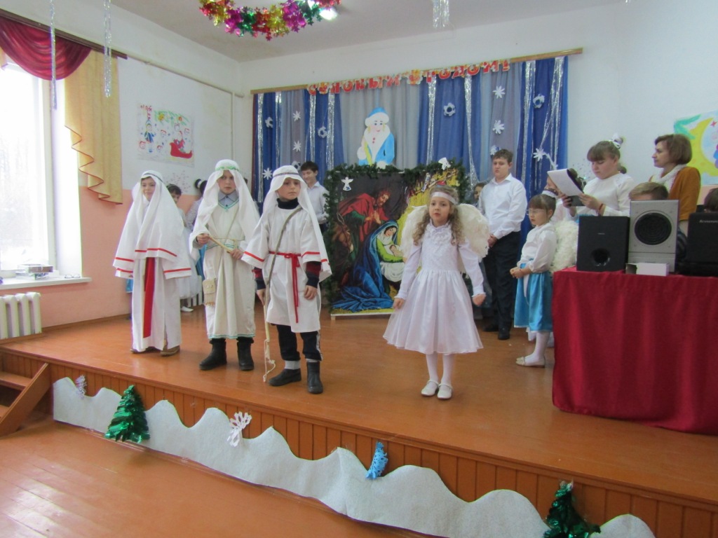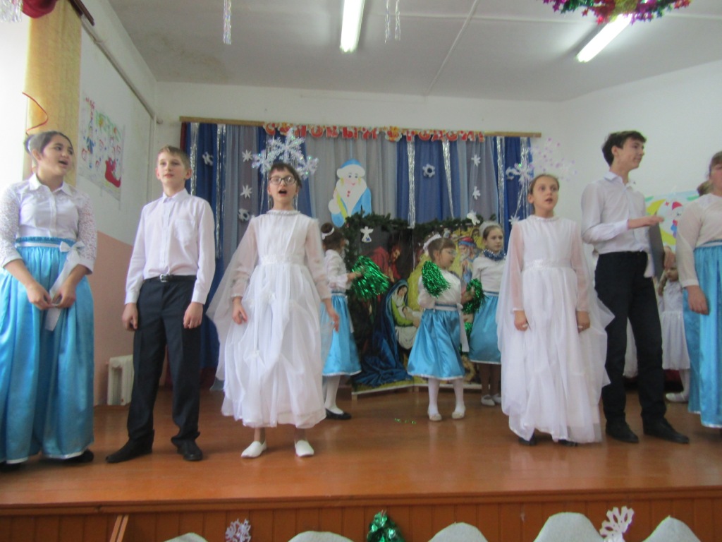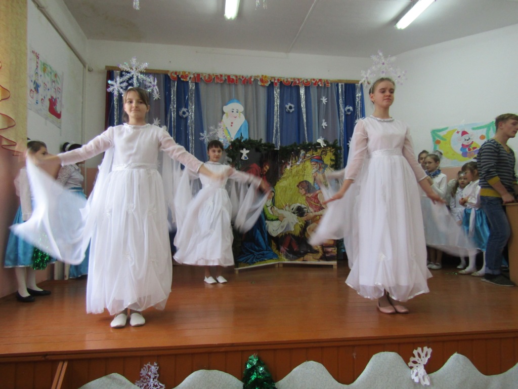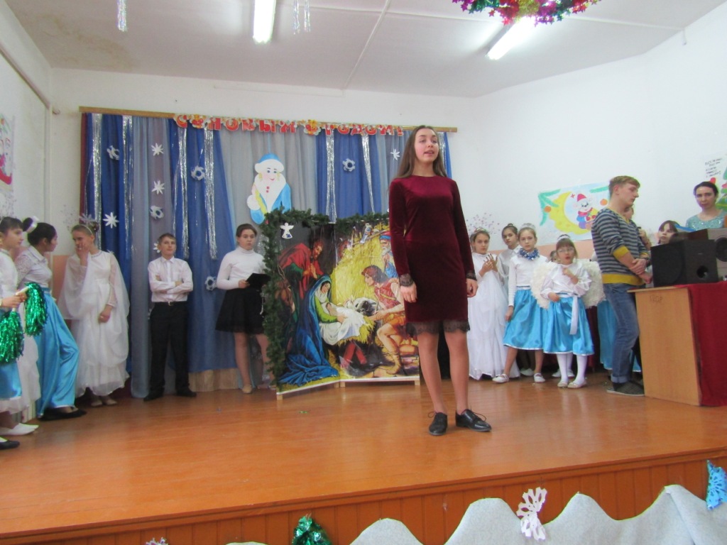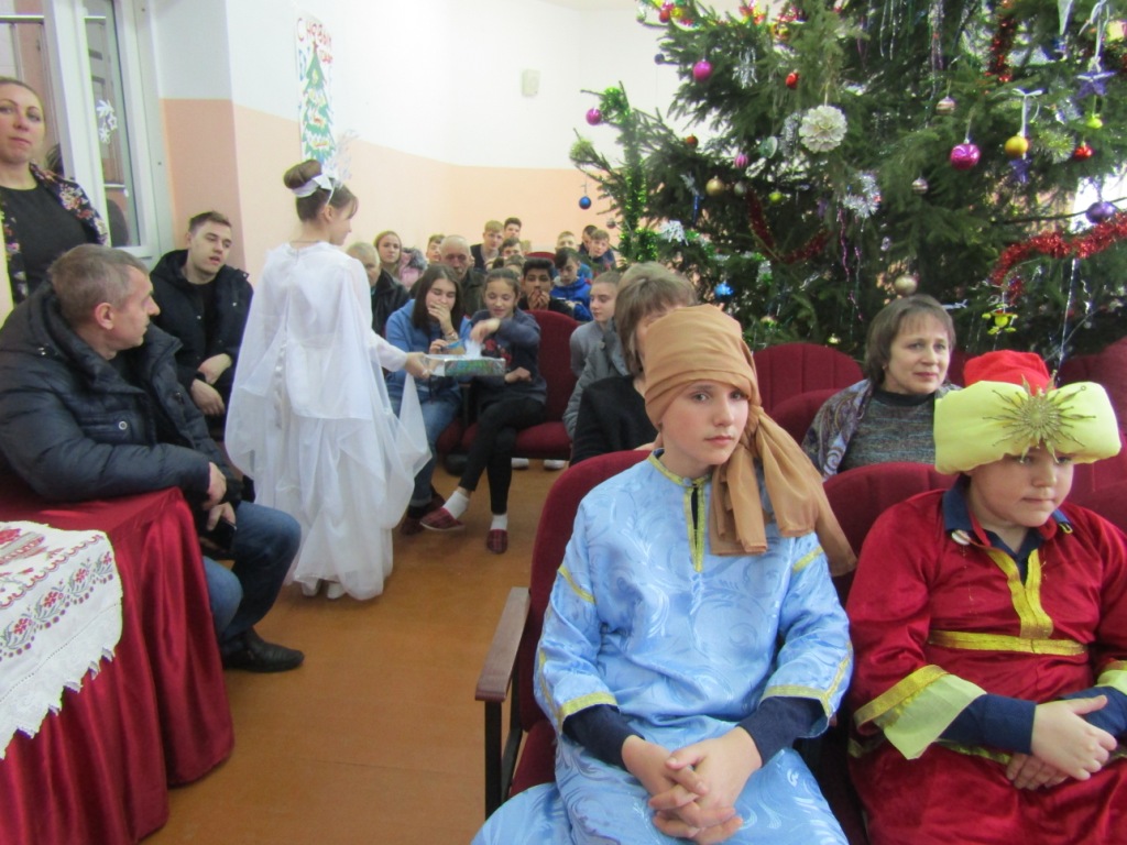 Открыл праздничную встречу протоиерей Василий Климчук, обратившийся к своим подопечным, их наставникам и воспитателям во главе с директором школы-интерната М.И.Ходиным с поздравительным словом. Далее слово было предоставлено юным христианам, которые подарили участникам мероприятия свое праздничное представление. В программе был традиционный Рождественский спектакль, повествующий о Евангельских событиях, а также хоровые, танцевальные и музыкальные номера, прославляющие Рожденного Спасителя. Все ребята с великим усердием и старанием дарили праздник детям, оставшимся без попечения родителей, ведя их к познанию Бога. Каждый стремился совершить маленький подвиг и принести в дар младенцу Христу свою маленькую роль, свое выступление. В завершение представления воспитанники воскресной школы вручили всем зрителям рождественские открытки с пожеланиями. Детское выступление было тепло принято и взрослыми и детьми.