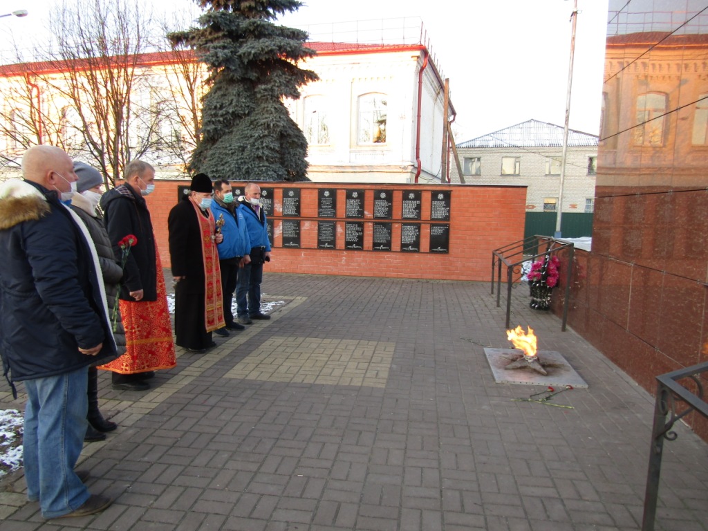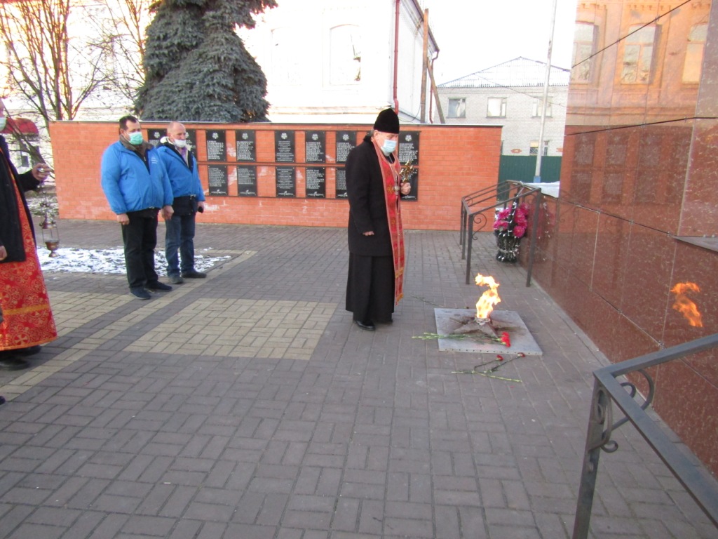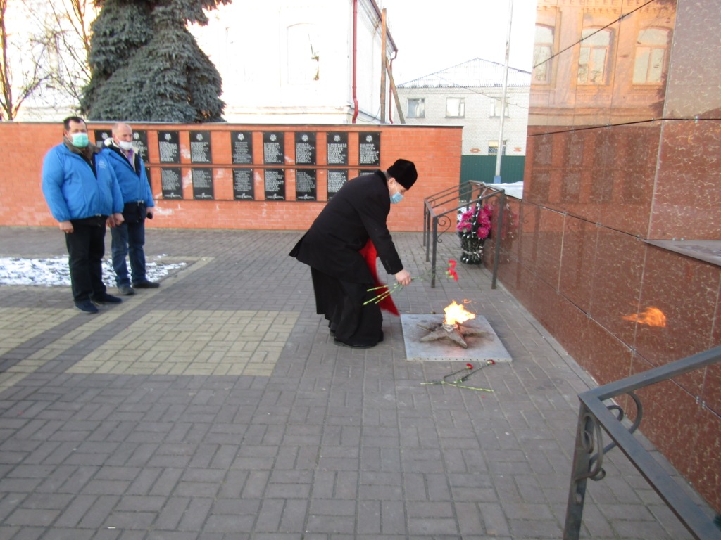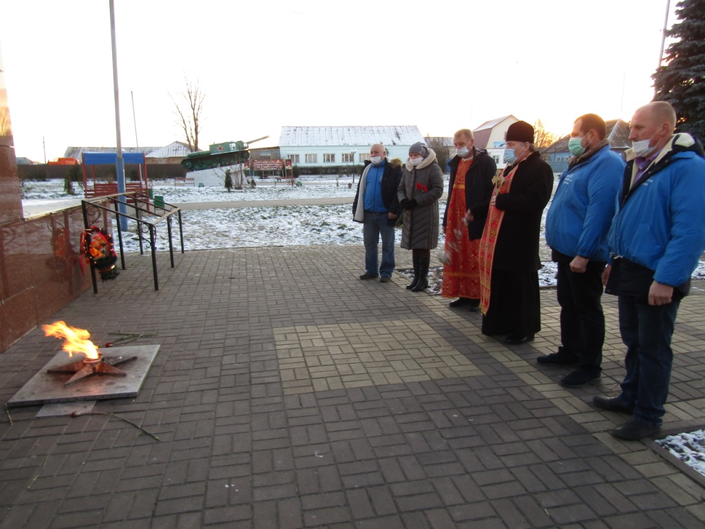 После богослужения волонтеры и прихожане храма во главе с отцом настоятелем собрались у памятника воинам-освободителям на площади Советской г. Мглина. Протоиерей Василий отслужил литию по павшим воинам, души свои за Отечество положившим. Соборной молитвой почтили собравшиеся память погибших Героев, убеленных сединами и совсем юных, верных сынов и дочерей своего Отечества, известных и безвестных, чьи имена ведомы одному лишь Богу….