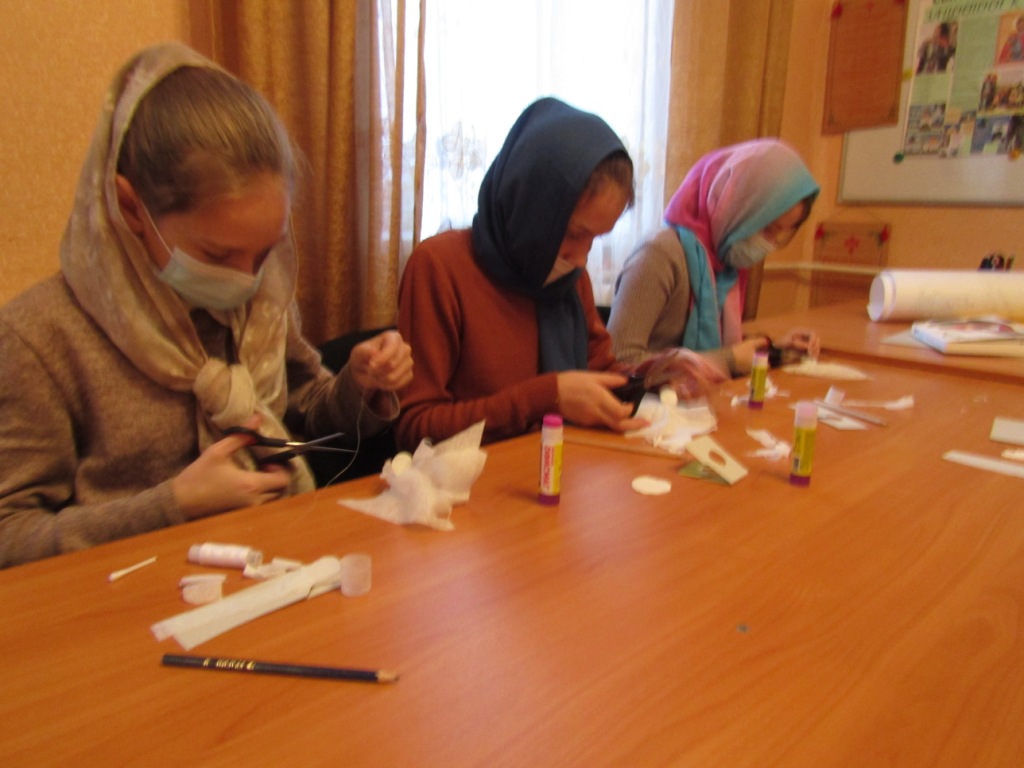 Совсем немного времени отделяют нас от светлого праздника Рождества Христова – одного из самых долгожданных для детей. Подготовка к любимому детскому зимнему празднику началась и в воскресной школе Успенского храма г. Мглина. На очередном занятии в «Творческой мастерской» воспитанники под руководством преподавателя Ольги Ивановны Зиминой изготовили рождественских ангелов. Вооружившись вискозными салфетками, нитками, ножницами, декоративной лентой, упаковочной бумагой и клеем ребята шаг за шагом поэтапно выполняли действия и указания учителя. И результатом их работы стали милые поделки – фигурки ангелов, которые станут праздничным украшением интерьера и рождественской ели.