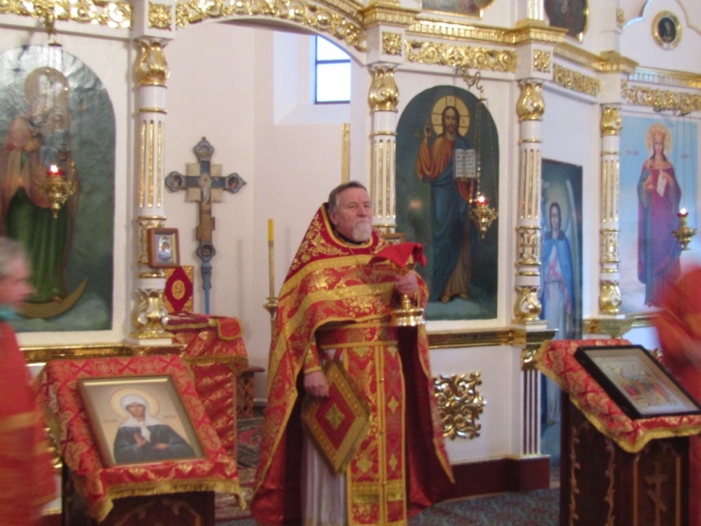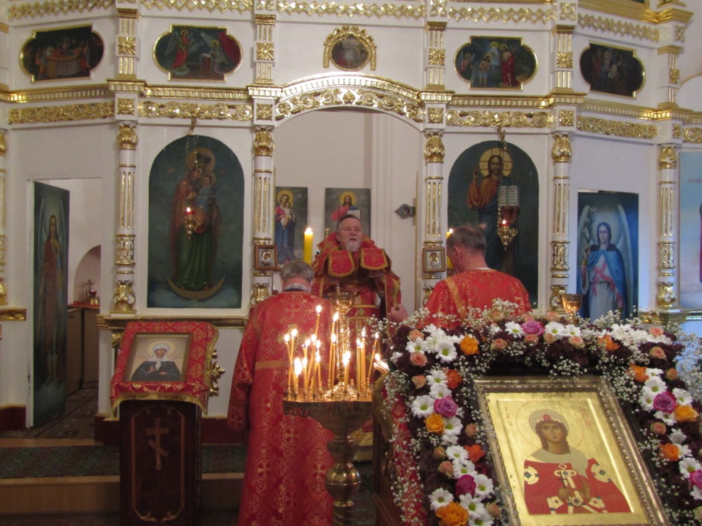 Отец настоятель поздравил паству с престольным праздником, напомнил присутствующим житие сей угодницы Божией. Святая Варвара воспитывалась в семье язычника Диоскора. Но во время его длительного отсутствия в городе Варвара встретила местных христиан и крестилась, обещав Богу посвятить свою жизнь только Ему. Варвара поверила в Единого Творца и отвергла греховное многобожие, к которому ее всячески склоняли. Лишь Богу она решила посвятить свою жизнь и известила отца, что отказывается от замужества. Разъяренный Диоскор отрекся от дочери и отвел ее к городскому правителю, предложив ему предать святую Варвару мучительным пыткам и смерти, если та не отречется от Христа. Варвара между тем громко исповедовала веру в Господа и обличала язычников. Она стойко перенесла все мучительные истязания вместе с другой девой Иулианией. В конце концов обе мученицы были обезглавлены, причем Варвару собственноручно казнил ее отец, Диоскор. Однако, и сам Диоскор - убийца собственной дочери был буквально испепелен угодившей в него молнией, что было воспринято как Божия кара.