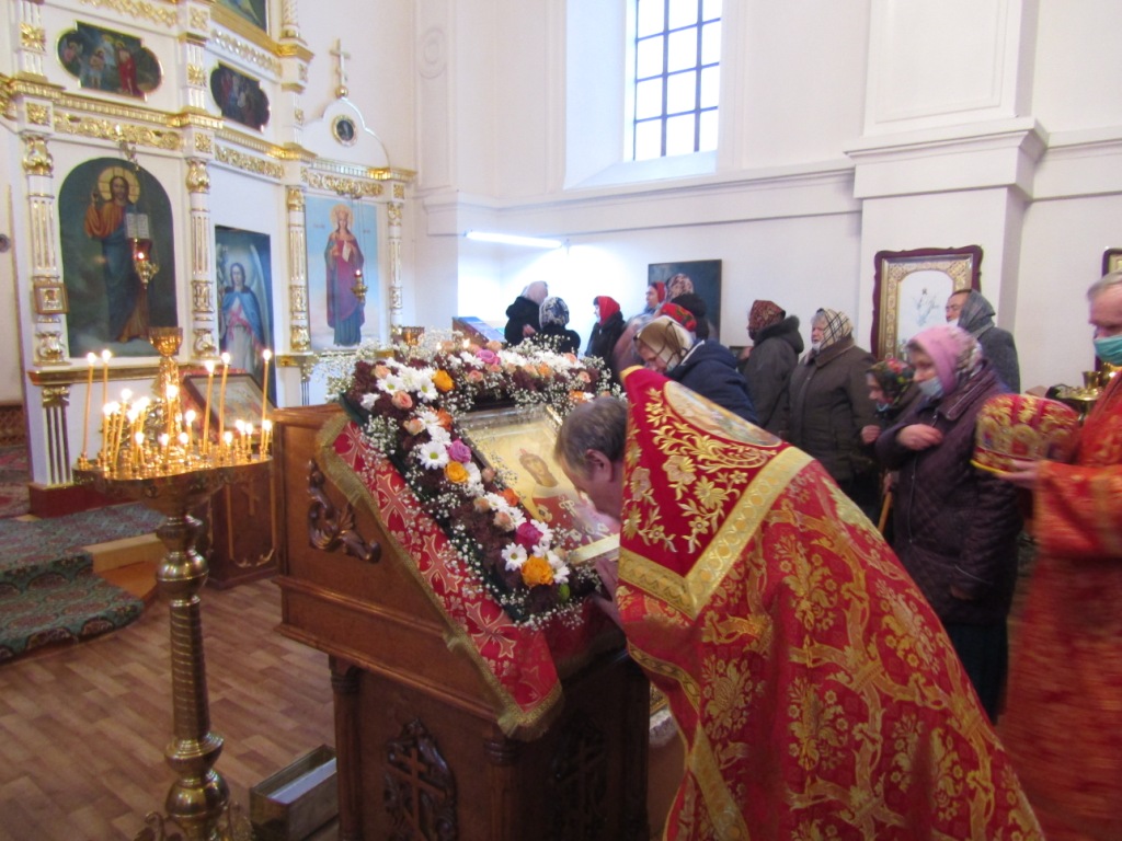 Пред сим святым образом прихожане в день престольного торжества молитвенно прославляли дивную угодницу Божию – святую всехвальную и добропобедную великомученицу Варвару. С верой и упованием на её всемощное предстательство, испрашивали, чтобы она ходатайствовала за нас и по ее молитвам Господь укрепил нашу веру, которая поможет преодолеть все угрозы мира сего. Порядок за богослужением и контроль за соблюдением противоэпидимических мер осуществлялся силами волонтеров Мглинского благочиния.