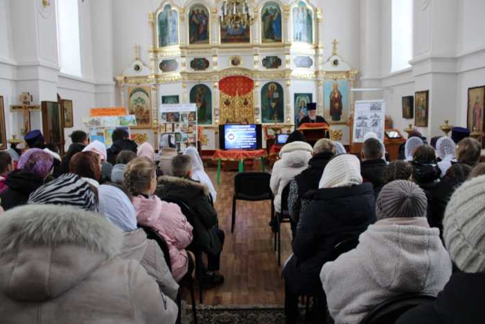 Мероприятие началось с молитвы о призвании благословения Божия на труды участников форума. Пленарное заседание приветственным словом открыл протоиерей Василий Климчук. В своем выступлении Его Высокопреподобие отметил значимость темы Чтений, которая призывает осмыслить неразрывную связь отечественной культуры и православной веры не только в прошлом и настоящем нашей страны, но и определить вектор дальнейшего культурного развития нашего многонационального общества. Отец благочинный объяснил, как на протяжении веков православная вера влияла на русскую культуру, и какие потери она понесла в годы богоборчества XX века. Батюшка рассказал о разрушенных храмах района, гонениях на священнослужителей, уничтожении церковных ценностей в те времена. На представленном стенде участники мероприятия смогли увидеть Успенский собор г. Мглина в его первоначальном виде и в годы разрухи. В завершении своего выступления протоиерей Василий Климчук призвал юных христиан беречь свою православную веру и сохранять свои многовековые традиции, чтобы в нынешних условиях насаждения западных ценностей, сохранить великое достояние, которое нам оставили наши предки и передать его последующим поколениям.