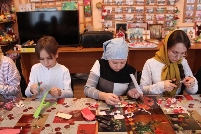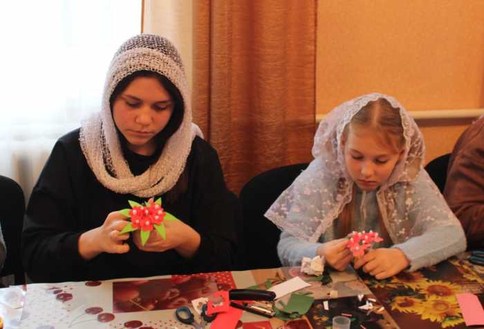 В воскресной школе при Успенском храме г. Мглина началась подготовка к предстоящему празднику. На занятии в «Творческой мастерской» воспитанники под руководством преподавателя Ольги Ивановны Зиминой изготовили подарки для любимых мам. Цель занятия – воспитать у детей чувство любви и уважения к матери, воспитать желание проявлять заботу, внимание, радовать ее своими делами и поступками. Используя цветную бумагу, пластилин, ватные палочки, пластиковые стаканчики, ребята смастерили цветочные букетики для самого близкого и родного человека. В свою работу каждый вложил не только мастерство, терпение, талант и фантазию, но и, конечно же, частичку душевного тепла и сердечной любви.