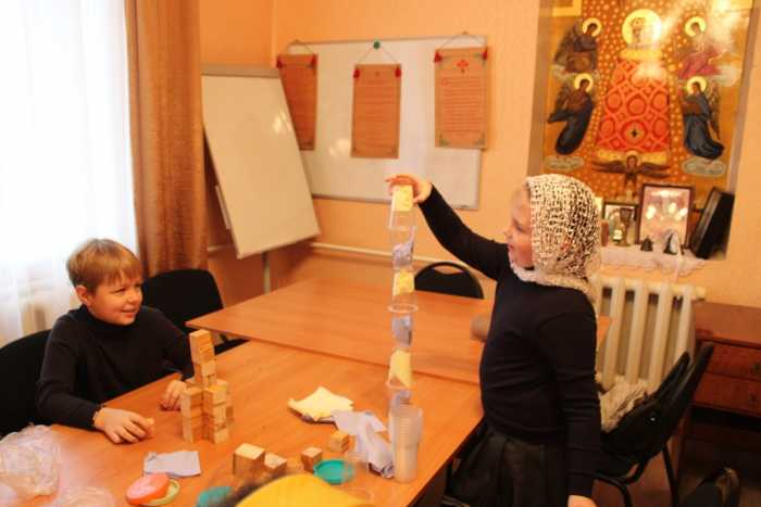 Урок Ветхого Завета, который провела преподаватель Елена Ивановна Бабакова, был посвящен строительству Вавилонской башни. Ребята познакомились с Библейским сюжетом. Они узнали, что люди решили собраться вместе, построить город и башню высотою до небес и «сделать себе имя». То есть прославиться, показать Богу, на что они способны. Бог ради самих же людей не позволил осуществиться этому замыслу. Он смешал их языки, так что они перестали понимать друг друга, и рассеял их по земле. Постройка города и башни остались незавершенными. Елена Ивановна подвела детей к выводу, что человек, каким бы сильным он ни был, не может жить без Бога. Потому что именно Бог дает нам жизнь, и все, что мы имеем, мы получаем именно от Него. Урок завершился практической частью, в ходе которой юные христиане из различных предметов построили модель Вавилонской башни.