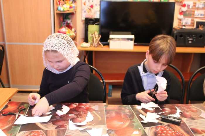 В воскресной школе при Успенском храме г. Мглина началась подготовка к радостному празднику Рождества Христова. На занятии в «Творческой мастерской» воспитанники под руководством Ольги Ивановны Зиминой смастерили Рождественского ангела. Ребята использовали картон и декоративные украшения.