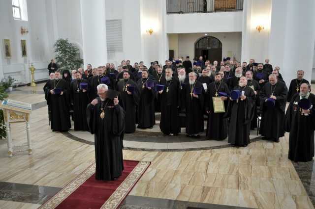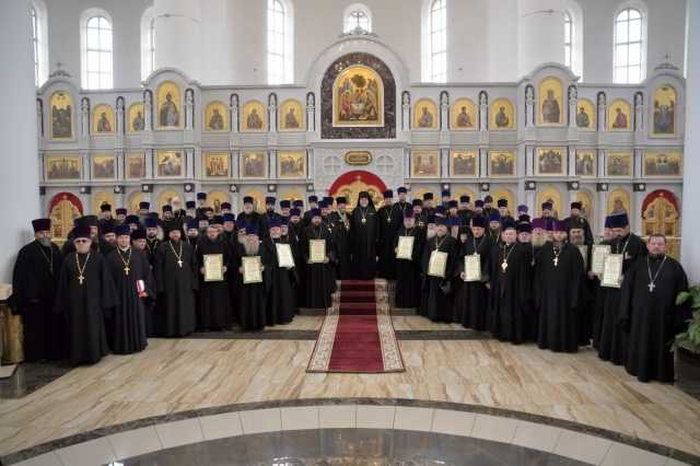 Вторая часть собрания была посвящена докладам руководителей епархиальных Отделов. Были отмечены успехи в просветительской работе. Открытие новых воскресных школ, создание детского церковного хора - все это, по словам владыки Владимира, укрепляет приходскую жизнь и способствует духовному воспитанию молодого поколения. Правящий архиерей вручил почетные архиерейские грамоты священникам, отметившим личные юбилеи в уходящем году, и поблагодарил всех клириков за усердие в служении. Перед духовенством поставлены задачи по дальнейшему укреплению богослужебной жизни, расширению просветительской, миссионерской и социальной деятельности, а также по подготовке к большому празднику Рождества Христова.
