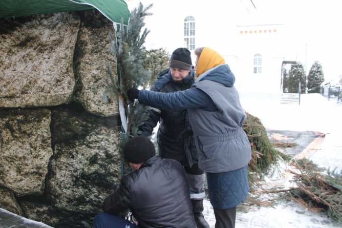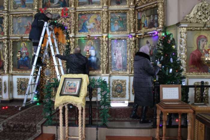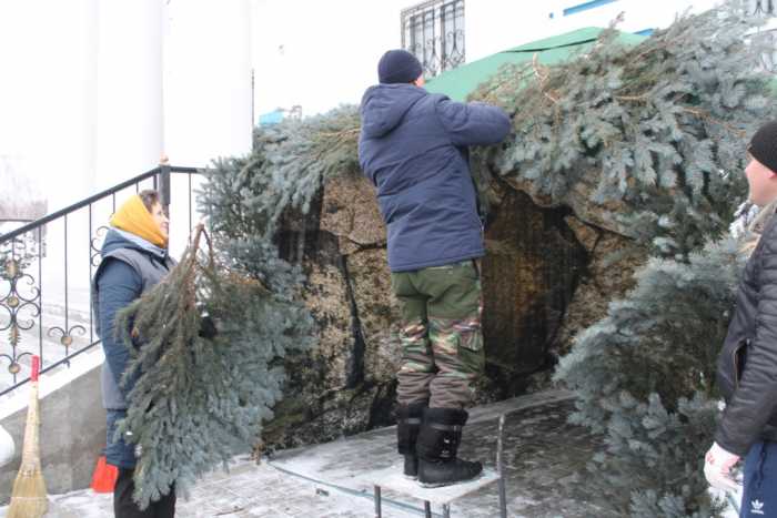 На приходе Успенского храма г. Мглина по благословению благочинного Мглинского церковного округа протоиерея Василия Климчука христианки православного женского клуба «Сестры» и волонтеры собрались, чтобы потрудиться для создания особой праздничной атмосферы. По традиции дом Божий был убран и украшен елками, а рядом с крыльцом возведен декоративный вертеп, который изображает события Рождества Христова. Это пещера с младенцем Иисусом, рядом с которым стоят пресвятая Дева Мария и ее муж святой Иосиф. Также вертеп украшают фигурки пастухов, животных, ангелов и Вифлеемская звезда, которая символизирует рождение младенца Иисуса. В храме во имя святой великомученицы Варвары была установлена и украшена елка для проведения праздничного мероприятия, которое готовят воспитанники воскресной колы. С особой теплотой трудились все собравшиеся, вкладывая в общее дело частичку своей души.