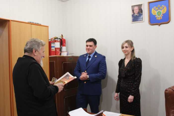 Протоиерей Василий Климчук в светлые Рождественские дни пожелал сотрудникам прокуратуры помощи Божией от Богомладенца Христа, крепкого здоровья, энергии и неиссякаемой силы духа, мира, благополучия и взаимопонимания. «Пусть почетное звание надежных стражей закона придает вам жизненных сил, энергии и оптимизма в решении самых сложных профессиональных задач», – подчеркнул батюшка. Каждому сотруднику прокуратуры отец Василий подарил иконку и праздничный номер газеты «С Рождеством Христовым».