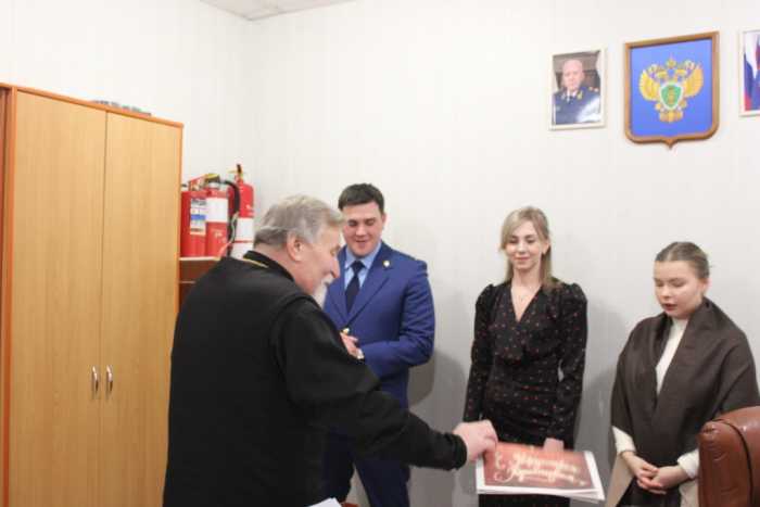 В день праздника сотрудников прокуратуры г. Мглина поздравил благочинный Мглинского церковного округа протоиерей Василий Климчук. В приветственном слове Его Высокопреподобие поблагодарил служителей закона за верность долгу, требовательность к себе и важнейший труд во имя справедливости. «Ваша ежедневная работа, требующая высочайшего профессионализма, компетенции, принципиальности и гражданской ответственности, имеет огромное значение. Вы стоите на страже правопорядка и укрепления общественной безопасности, защищаете права и интересы граждан, внося неоценимый вклад в стабильность и безопасность жизни Мглинского района» – отметил священнослужитель.