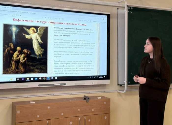 В рамках мероприятий была представлена презентация, в ходе которой дети под руководством преподавателей узнали много интересного о Рождестве: познакомились с ключевыми эпизодами евангельского повествования о рождении Иисуса Христа, узнали о значении Вифлеемской звезды, поклонении пастухов и волхвов, изучили символику и атрибуты праздника – рождественскую елку, свечи и венки, а также обсудили традиционные обычаи и обряды, связанные с Рождеством и Богоявлением. Ребята задавали вопросы, рассуждали о том, как сохранить древние традиции в наем современном мире, говорили о вере, милосердии, доброте – о том, что составляет настоящий дух Рождества.