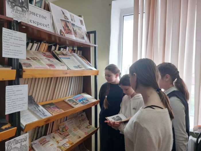В читальном зале Мглинской межпоселенческой центральной библиотеки для юных христиан прошло просветительское мероприятие «Свет Христова Воскресения». Его участниками стали учащиеся 6 класса Мглинской СОШ №1 вместе с помощником благочинного по работе с молодежью Светланой Александровной Рыжаковой.