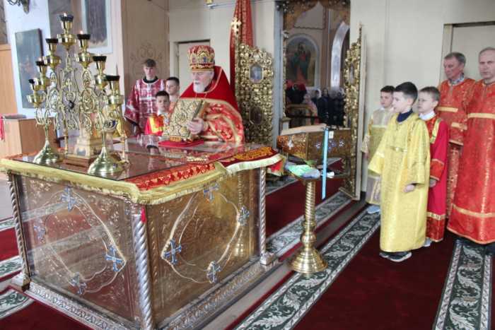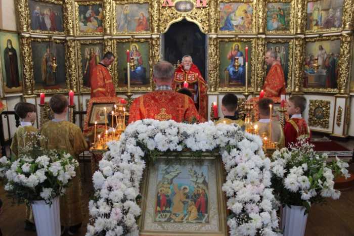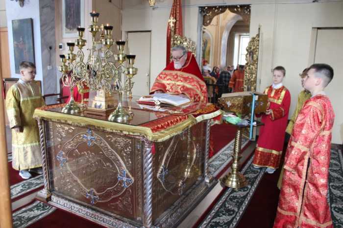 Прихожане храма за богослужением вспоминали подвиг святых жен-мироносиц, тех самых женщин, которые всем сердцем и душой возлюбили своего Божественного Учителя, всюду следовали за Ним и бескорыстно Ему служили. Именно они остались у подножия Голгофского Креста даже после того, как в страхе разбежались почти все апостолы. Именно эти бескорыстные, самоотверженные и смелые женщины с горящими верой, надеждой и любовью сердцами устремились «на следующий день после субботы» еще затемно ко гробу Спасителя нашего дабы, завершая погребальный обряд, помазать Его Пречистое Тело благовонным миром. Именно здесь, во гробе Господнем, они первыми узнали о Воскресении Христовом и ни минуты не сомневаясь в истинности происшедшего, сразу же устремились к апостолам с этой радостной вестью. После дня Пятидесятницы святые жены-мироносицы проповедовали благую весть о Христе Воскресшем среди различных народов и засвидетельствовали свою проповедь мученической кровью.