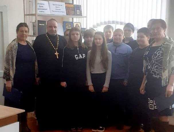Накануне праздника в Мглинской детской библиотеке прошло мероприятие для учащихся Мглинской СОШ №2. К юным христианам обратился благочинный Мглинского церковного округа протоиерей Василий Климчук. Батюшка отметил, что православная книга является путеводителем в в духовной жизни, помогает глубже понять Божьи заповеди и наставления, формирует мировоззрение и поддерживает внутренние силы в трудные моменты.