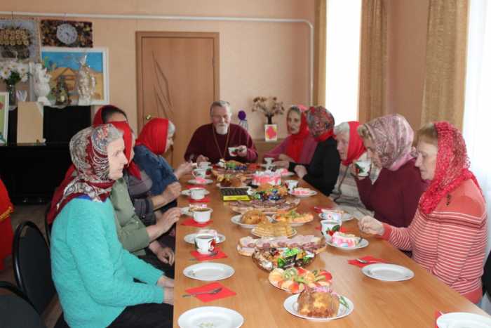 В православный женский день прихожанки Успенского храма г. Мглина, те, кто несет послушание в Дому Божием, собрались за единым столом в кругу приходской семьи на духовную беседу.