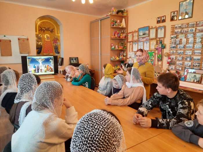 В Неделю пятую Великого поста воспитанники воскресной школы собрались на очередное занятие Евангельского чтения, которое провела преподаватель Елена Ивановна Бабакова.