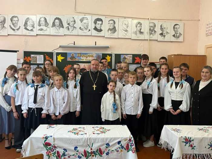 14 октября в Новоромановской СОШ Мглинского района прошло замечательное мероприятие ,посвященное Покрову Пресвятой Богородицы – празднику, который является престольным в с. Новая Романовка. В зал, украшенный цветами и осенними листьями, ребята пригласили настоятеля храма Покрова Пресвятой Богородицы иерея Сергия Локтева, чтобы вместе порадоваться празднику.