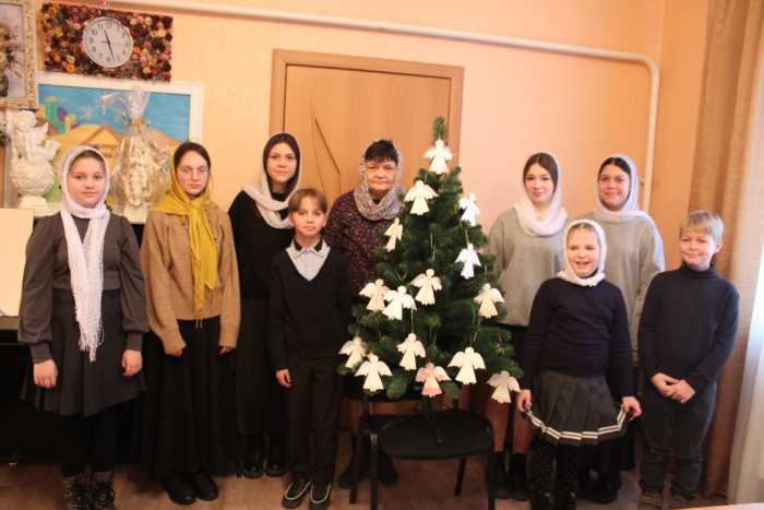 В воскресной школе при Успенском храме г. Мглина началась подготовка к радостному празднику Рождества Христова. На занятии в «Творческой мастерской» воспитанники под руководством Ольги Ивановны Зиминой смастерили Рождественского ангела. Ребята использовали картон и декоративные украшения.