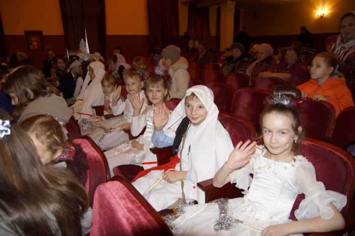 Первыми выступили ребята воскресной школы кафедрального собора во имя святых первоверховных апостолов Петра и Павла. С первых минут их выступления на лицах зрителей появились улыбки, становилось светло и радостно на душе.