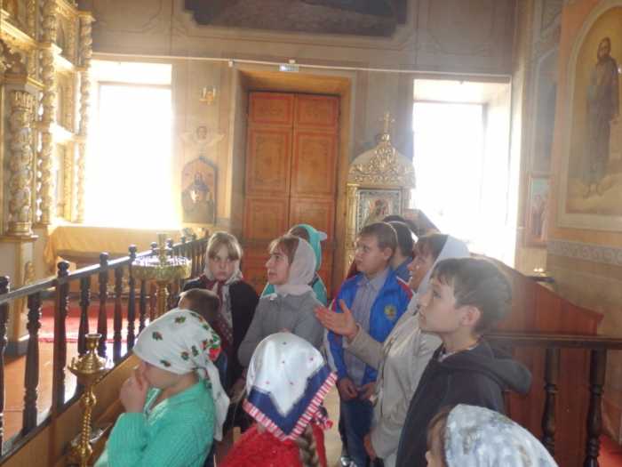 Учитель воскресной школы Елена Ивановна Бабакова провела экскурсию по храму, которая была рассчитана главным образом на новичков, но и те ребята, которые уже ранее посещали занятия, смогли почерпнуть для себя много нового, узнать интересные сведения и факты об устройстве храма, его святынях, правилах поведения в храме и церковном этикете.