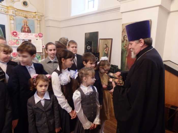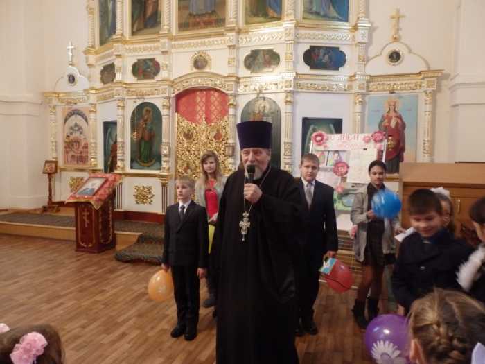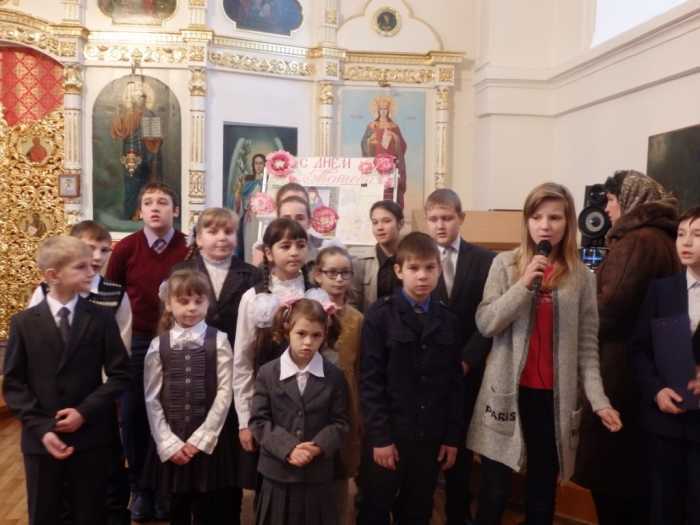 После Литургии был отслужен молебен, по завершении которого все были приглашены на праздничное мероприятие, посвященное Дню Матери. Открыл праздник приветственным словом к собравшимся настоятель Успенского собора протоиерей Василий Климчук. Батюшка выразил слова сердечной благодарности всем женщинам, несущим по жизни подвиг материнства, и напутствовал присутствующих всегда помнить и свято исполнять пятую заповедь Господа – быть добрыми и любящими детьми для своих родителей. Воспитанники воскресной школы представили вниманию зрителей концертную программу «В мире нет тебя дороже, моя родная!», посвященную женщинам – матерям. В адрес любимых мам и бабушек прозвучало много трогательных стихов, исполнены песни, наполненные благодарностью и любовью. Также присутствующих на празднике порадовали веселые сценки и исполненные ребятами частушки под собственный аккомпанемент. Ребята воскресной школы смогли выразить свои чувства к матерям и бабушкам не только через литературно-музыкальную композицию, но и с помощью подарков, сделанных собственными руками. Со словами поздравлений с Днем Матери, дети подарили им праздничные открытки. Завершился праздничный концерт вручением преподавателям и воспитанникам воскресной школы сладких подарков из рук отца настоятеля и общим фото на память об удивительно светлом празднике, посвященном самому главному человеку в жизни каждого - маме.