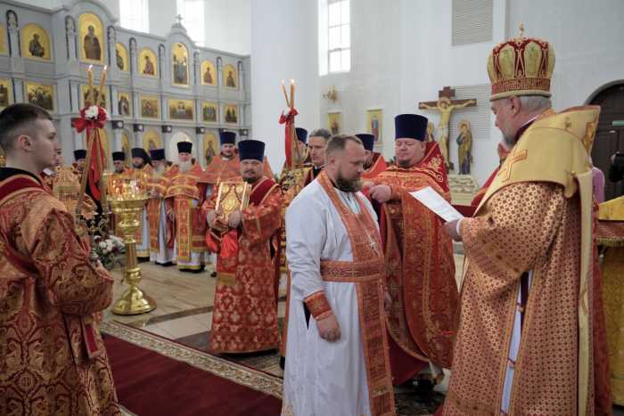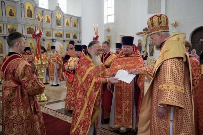 Архипастырь поздравил священников со Светлым Христовым Воскресением и вручил богослужебно-иерархические награды ряду клириков епархии.