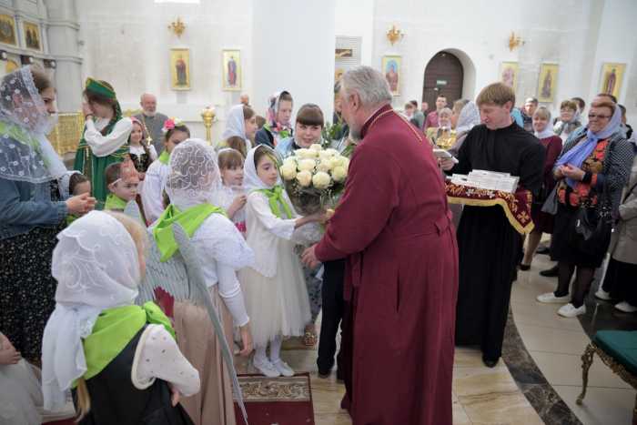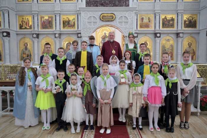 По Божественной литургии воспитанники воскресной школы собора представили вниманию духовенства и прихожан праздничное выступление.